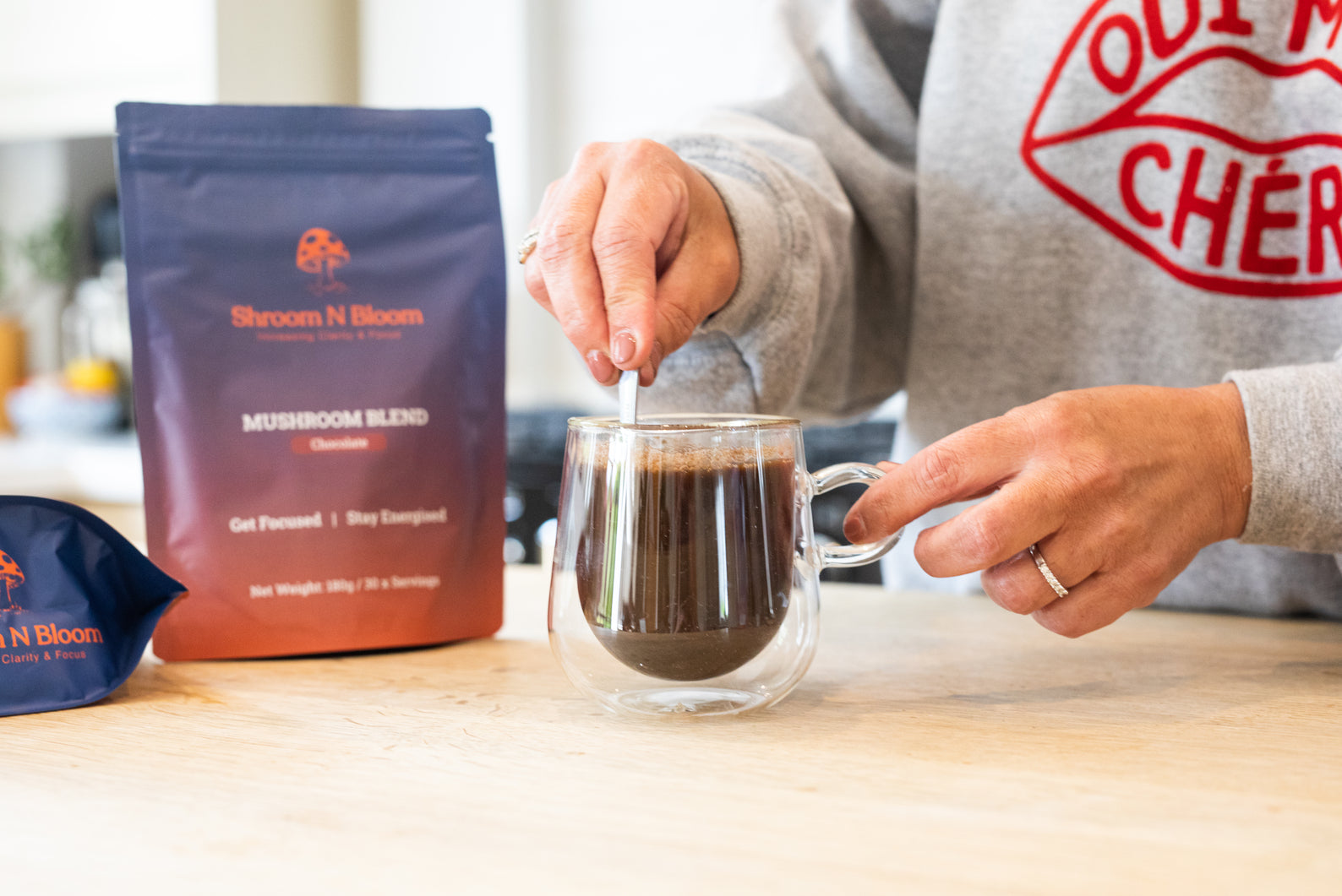 Elevate your daily performance with Shroom N Bloom's premium mushroom blend, expertly formulated to optimise mental clarity, enhance focus, and provide sustained energy throughout your day.